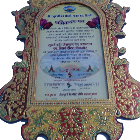 Sugni Devi Jesraj Baid Hospital and Research Center will impart high quality Medicare to the poor and needy people with an aim to run the institute on no profit no loss basis”. “The Institute is promoted by Shri RC Jain, T.T. Charitable Trust of T.T. Group of Companies. The chairman of the trust,  Shri RC Jain, a great philanthropist, has a strong desire to build a hospital for human service